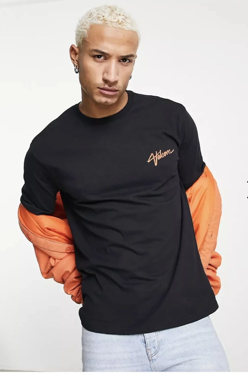 Volcom Pullovers Unisex Street Style Plain Cotton Short Sleeves For Men Black X Xs Chest32-34